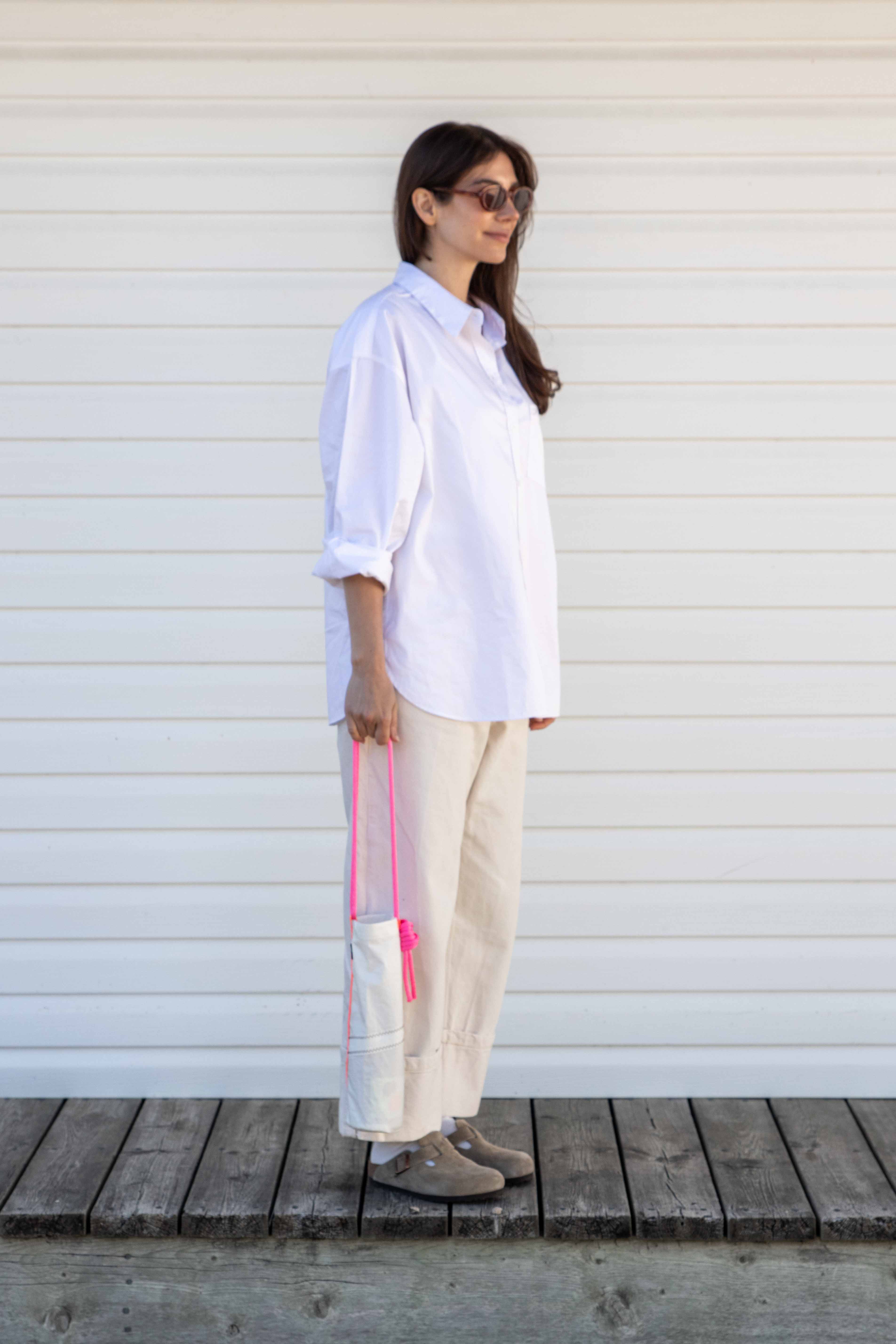 Every Dayshaped bag is a unique reflection of the sail it’s made from. We embrace each sail’s one-of-a-kind details — the numbers, stitching, hardware and telltales — and the patina that tells the story of its former life on water. Image is for style reference only.